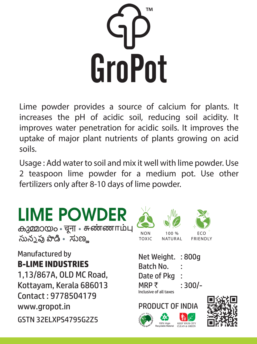 Gropot Premium Lime Powder for Garden